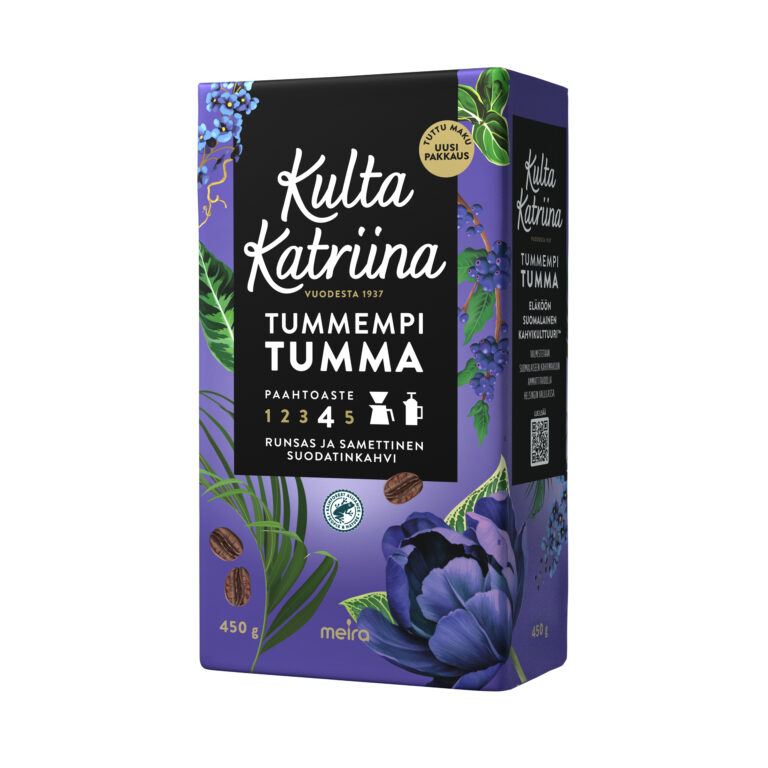 Kulta Katriina Tummempi Tumma on vastaus yhä tummemman paahdon ystävien toiveisiin. Se on korkealaatuinen arabica-kahviseos, jonka pavut tulevat Etelä- ja Väli-Amerikasta sekä Itä-Afrikasta. Syvä paahtoaste (4) tuo kahviin paahteisuutta, mutta maku on myös täyteläinen ja pehmeän samettinen. Kahvin jälkimaku on suklainen ja voimakas.