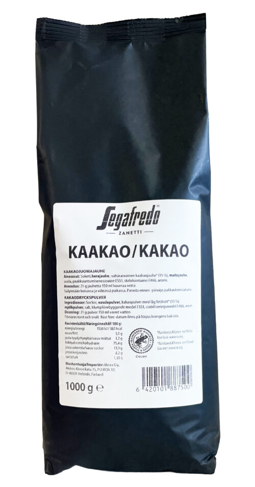 Segafredo kaakaon italialaistyylinen tasapainoinen ja intensiivinen maku on jokaisen suklaanystävän unelma. Hienostunut tuote ensiluokkaiseen kaakaonautintoon. Valmistettu Rainforest Alliance -sertifioidusta kaakaosta.